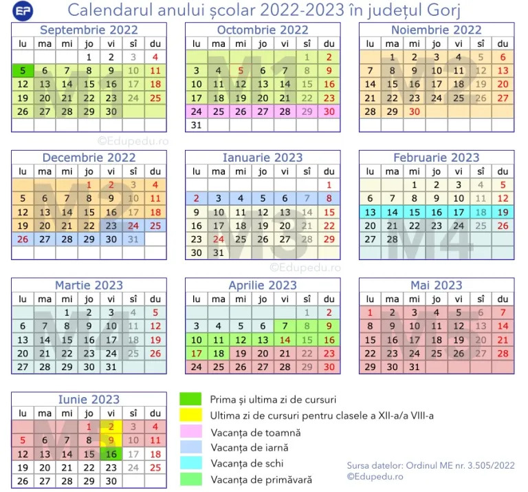 - vacanță: de vineri, 23 decembrie 2022, până duminică, 8 ianuarie 2023;