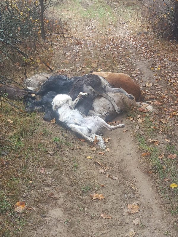 Cadavrele mai multor câini stau în grămadă sau împrăștiate, într-o pădure, la Câlnic. Cei care au găsit leșurile animalelor sunt șocați. ”E un masacru. Sunt imagini cumplite. Au fost omorâți și aruncați aici. Cei care au făcut asta sunt niște bestii”, a spus un localnic. Deocamdată, primarul comunei, Dumitru Vulpe nu a putut fi contactat.