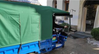 Mănăstirea are, mai exact, în dotare un triciclu electric pentru transport marfă, care costă pe piață între 8300 și 8600 de lei. Denumit și TUK TUK, mijlocul de locomoție a fost achiziționat de lăcașul de cult de la firma MOVE ECO. Triciclul prinde 42 km la oră și se încarcă la o priză de 220 V.