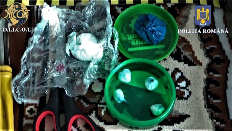 În urma punerii în aplicare a 4 mandate de percheziție domiciliară, au fost descoperite și ridicate 22,99 grame de cocaină, trei grindere și 550 de euro şi 7.540 de lei.