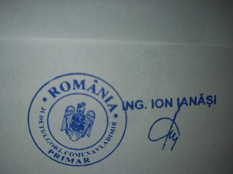 ,,Sunt patru astfel de ștampile în primăriei. Fiecare conține parafa rotundă a UAT-ului, numele primarului și semnătura”, spune viceprimarul de la PSD. Practic, o ștampilă de acest fel stă la primarul liberal, alta la asistentul comunitar, a treia la contabil și a patra la inspectorul pe Achiziții. Cu siguranță, Prefectura Gorj va cere explicații primarului de Vladimir, în legătură cu legalitatea acestei ștampile, știut fiind că edilii trebuie să semneze olograf documentele. Și utilizarea ștampilei de către anumiți salariați ai primăriei pune serioase semne de întrebare legat de calitatea acestor persoane de a ,,semna” în numele primarului acte importante ale UAT.