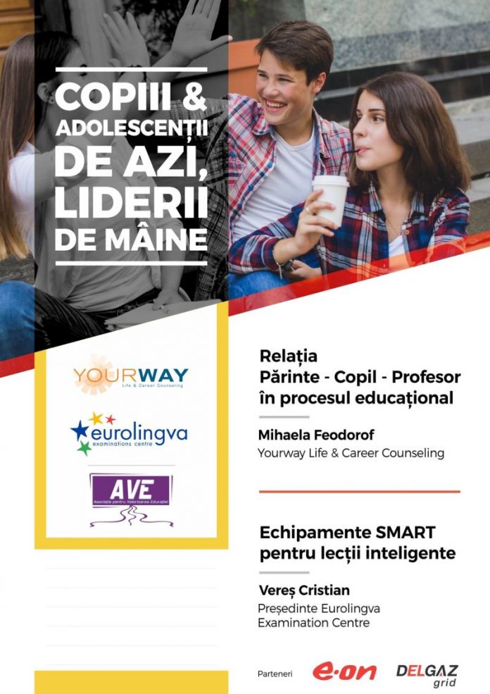 Acesta este primul program educațional național care aduce împreună părinți, dascăli și specialiști în educație. Scopul este acela de a găsi soluții la câteva dintre cele mai importante probleme cu care se confruntă copiii/adolescenții, părinții acestora și profesorii: importanța identificării potențialului copiilor/adolescenților și valorizării acestuia; instrumentele și tehnicile pe care profesorii le pot folosi pentru a susține și ajuta evoluția elevilor în funcție de vocația fiecărui copil; identificarea timpurie a potențialului, dar și a nevoilor și intereselor individuale și unice ale fiecărui copil în parte. Inițiatorii proiectului, Yourway Life & Career Counseling, Eurolingva Examinations Centre și AVE (Asociația pentru Valorizarea Educației), au venit cu această idee ca o reacție firească la starea sistemului educațional, aflat într-o continuă schimbare și adaptare. În cadrul programului se vor atinge teme precum: relația părinte-copil-profesor în procesul educațional și echipamente SMART pentru lecții inteligente. ,,Yourway Life & Career Counseling a fost un pionier în organizarea unor astfel de proiecte. În 2010, am demarat un proiect pilot cu scopul de a oferi profesorilor dintr-o școală de stat un program de dezvoltare personală în acord cu obiectivele profesionale. Am venit cu această metodă în dorința de armoniza relația profesor-elev, încercând astfel să asigurăm performanța profesională a cadrelor didactice și reușita elevilor. Replicarea acestui pilot a condus la ideea de a împărtăși tuturor adulților implicați în formarea copiilor (profesori, părinți, antrenori, mentori) din cunoștințele și experiența de 10 ani în dezvoltarea minorilor”, spune Mihaela Feodorof, Managing Partner Yourway Life & Career Counseling. ,,Eurolingva Examinations Centre este conştientă de necesitatea inovării în domeniul educaţiei și, de aceea, căutăm noi soluţii pentru a spori eficienţa activităţii de predare din școală. În cadrul caravanei educaţionale ,,Copiii și adolescenţii de azi, liderii de mâine” vom prezenta în premieră pentru România câteva echipamente care reuşesc să transforme orice suprafaţă, fie că vorbim de un ecran de proiecţie, o tablă albă obişnuită, un perete sau o simplă foaie de hârtie, într-o suprafaţă ,,inteligentă”, declară Cristian Vereș, Președinte Eurolingva Examinations Centre. ,,Colaborarea de peste 4 ani cu echipa Yourway în programe de identificare și valorizare a potențialului copiilor și adolescenților din Țara Făgărașului a adus beneficii majore în viața a numeroase familii, suport în viața profesională a zeci de dascăli pasionați de armonizarea relațiilor cu elevii de la clasă și inspirație în activitatea mea din cadrul centrului educațional AVE. Cred că e timpul să contribuim la procesul de conștientizare a importanței unicității, valorii personale și a potențialului cât mai multor copii și adolescenți din țara aceasta”, declară Marciana Streza, Președinte AVE. ,,Copiii și adolescenții de azi, liderii de mâine” face parte dintr-un proiect mai amplu, ,,Caravana aniversară 10 ani Yourway”, și, până acum, a fost prezentă în: Ploieşti, Sibiu, Deva, Oradea, Arad, Zalău, Cluj, Bistriţa, Târgu-Mureş, Bacău, Suceava, Iaşi. Între 10 și 12 octombrie, caravana ajunge în Târgu-Jiu, Craiova și Pitești.