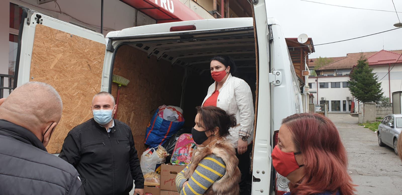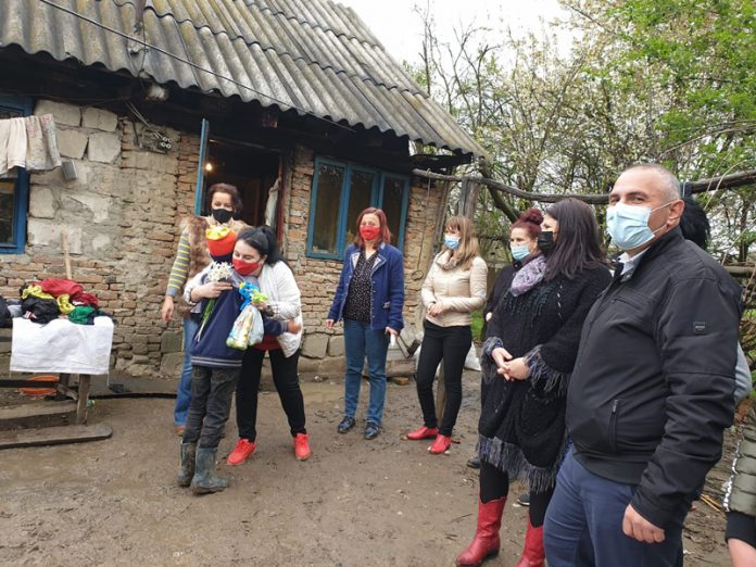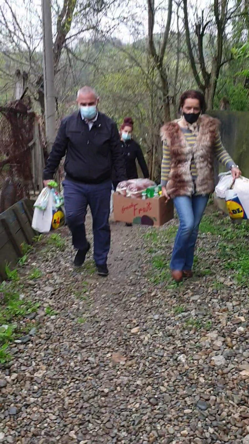Alături de doamnele din OFSD Motru a fost prezent și primarul Cosmin Morega, dar și alți colegi de partid care au ajutat la distribuirea darurilor.