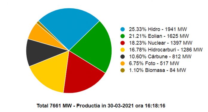 Contribuția producției de energie pe bază de cărbune în sistemul național a scăzut considerabil. De pildă, ieri după-amiază cărbunele se situa pe locul 5 între combustibilii generatori de energie, cu o cotă în Sistemul Energetic Național (SEN) de numai 10,48%. În cursul zilei de ieri, energia Hidro ocupa primul loc, livrând pentru consumul național 25,29% din totalul producţiei de energie, eolienele livrau 20,82%, energia nucleară avea o cotă de 18,32%, hidrocarburi – 16,91, al cincilea loc este energia pe bază de cărbune care livra în sistem puțin peste 800 de megawați. Consumul național de energie era, ieri, 7.250 MW, la o producție de 7.581MW, diferența din cererea de energie fiind acoperită de importuri.