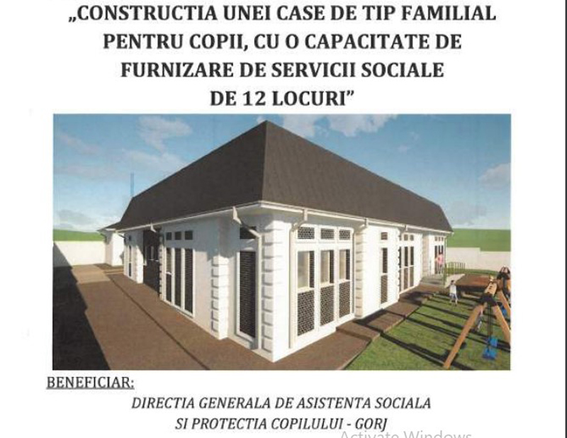 „Deficiențele situației actuale constau în existența unui număr mare de beneficiari în centrele de plasament și lipsa unui mediu de creștere și educație cât mai apropiat de tip familial în centrele de tip rezidențial, în care copiii nu beneficiază de intimitatea unei case de tip familial, nu pot participa la toate activitățile specifice unei vieți obișnuite de familie, respectiv pregătirea mesei în familie, propunerea unor meniuri specifice, participarea la curățenie, pregătirea deprinderilor necesare unei vieți independente etc. Pentru a compensa toate aceste deficiențe, este necesară construcția unei case de tip familial, cu o capacitate de 12 locuri”, potrivit documentației. Curtea va fi amenajată cu gazon, flori și arbuști, se vor monta băncuțe și două leagăne, iar în grădină se vor planta pomi fructiferi. Valoarea estimată a investiției este de 2 milioane lei, fără TVA. Firmele de construcții interesate au termen până pe data de 17 iunie să depună ofertele sau cererile de participare. Realizarea caselor de tip familial este parte a reformei sistemului de protecție socială care implică închiderea vechilor centre de plasament.