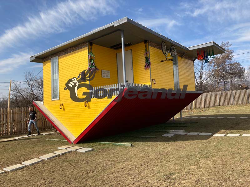 Într-o lume în care normalul pare destul de departe de ceea ce știam cândva că reprezintă acest lucru în viețile noastre, un tânăr din Gorj s-a gândit să atragă turiști pe meleagurile noastre construind o altfel de căsuță. Este una răsturnată, cu susul în jos, cum spune majoritatea celor care de sâmbătă încoace i-au trecut pragul, după ce aceasta a fost inaugurată oficial. Inedita construcție se află la câteva sute de metri de Pădurea Colorată, fiind accesibilă turiștilor care mai ales vara vin în vizită pe Transalpina. Proprietarul căsuței este Alexandru Luțan, mult mai cunoscut în cercul său de prieteni ca fiind Ducu. El a fost cel care a gândit și realizat întreg proiectul după ce a văzut o căsuță asemănătoare în Turcia. Spune că nu a avut atunci timp să o viziteze, dar s-a gândit că e o idee bună de afacere, mai ales că în România nu mai există o asemenea locație, iar în Europa sunt puține și nu au interiorul decorat, așa cum este în căsuța sa. Accesul în casă se face după ce fiecare turist își trece piciorul printr-un aparat special de înfoliere a încălțămintei, astfel că în interior curățenia se menține permanent. Ducu spune că a lucrat și câte 12 ore pe zi pentru a vedea gata investiția care l-a costat circa 30.000 de euro până acum. „Veneau turiștii efectiv în curte și intrau peste noi în casă ca să îi lăsăm să o viziteze. Construcția în sine e gata din toamnă, dar la interioare am lucrat până acum. Oamenii veneau la Pădurea Colorată și vin inclusiv pe jos până la noi. Eu am amenajat aici și o parcare în care să intre multe mașini pentru că oamenii vor dori să găsească aici un loc unde să își lase mașina. Cu o rudă a mea am lucrat și câte 12 ore pe zi. Mă strigau vecinii noaptea să mă întrebe dacă tot nu am terminat. Când vezi construcția de afară pare ceva simplu, dar, în realitate, lucrurile sunt mai complicate. Problema cea mai mare era că ne lua amețeala când am început să fixăm lucrurile pe podea, care, de fapt, în această casă, e tavanul. A fost greu la montarea parchetului, dar și la fixarea lucrurilor din casă. Masa și scaunele din bucătărie par prinse în tavan, dar ele sunt fix ca într-o casă în care sunt pe podea. De la atâta amețeală ne pierdeam și inspirația. Sunt dulapurile care au trebuit fixate, la fel obiectele din baie și dormitor. În bucătărie puteți întâlni tot ce poate avea o gospodină nevoie pentru a găti, dar totul e prins cu susul în jos. O să punem o pancartă pentru ca oamenii să nu atingă lucrurile pentru că e inclusiv un cuțit aici. Noi l-am prins în silicon pentru că vrem ca totul să fie cât mai realist și mai sigur. Am vrut să combinăm stilul rustic cu cel modern și am mers pe mobilă albă pentru că deschide și, recunosc, dă bine și în fotografii pentru că oamenii vin aici și vor să facă multe poze. O căsuță de genul acesta am văzut când am fost într-o călătorie în Turcia. Nu am avut timp să o vizitez, dar un prieten de-al meu a vizitat-o și mi-a povestit cum este. Atunci mi-am pus în plan să fac așa ceva și la noi, mai ales că, din ce am studiat eu, nu există un astfel de obiectiv în România. Iar în Europa, din ce știu eu, mai sunt câteva locații cu căsuțe răsturnate, dar care nu sunt mobilate pe interior pentru că e un lucru extrem de dificil să realizezi așa ceva”, spune Alexandru Luțan. Ducu a dezvoltat în jurul căsuței și un parc de distracții, cu o tiroliană, iar turiștii au fost încântați să descopere un astfel de loc aici, chiar dacă până la deschiderea sezonului mai sunt câteva luni, atunci fiind așteptat un număr mai mare de vizitatori. Taxa de intrare este de 15 lei, proprietarul sperând ca, astfel, în timp, să își recupereze măcar o parte din investiție. „Tocmai din orașul lui Nea Mărin, al marelui actor Amza Pellea, de la Băilești venim. Am văzut o postare pe pagina prietenei noastre Mărioara Băbu cu această căsuță răsturnată, iar acum, dacă am auzit că are și interiorul pregătit să fie vizitabil, am venit să vedem ceva ce nu se întâlnește peste tot. Are minunat și mă bucur că suntem primii vizitatori care am trecut pragul acestei case. E o premieră și o mare onoare pentru noi să fim aici”, a spus primul oaspete pe care Căsuța Răsturnată l-a avut. Iar printre cei care sâmbătă au ajuns aici a fost și băcița Mărioara Băbu, cea care a mărturisit că îl știe pe Ducu din copilărie, încurajându-l mereu să își materializeze visele. „Mi-a plăcut ce a făcut Ducu aici. Eu îl știu de când era copil. E unic în țară ceea ce a făcut el aici, mai ales că are și spațiu de joacă amenajat pentru copii. Îmi doresc ca toți tinerii din România să facă astfel de proiecte ca să putem să atragem turiștii pe meleagurile noastre și să ne bucurăm de frumusețile pe care le avem. Îl felicit pe Ducu pentru că a fost un curajos și a făcut ceva unic în România, el fiind primul care a construit o căsuță răsturnată. Sunt convinsă că turiștii îi vor trece pragul, având acum încă un obiectiv în plus de vizitat când vor ajunge în Gorj”, a spus Mărioara Băbu.