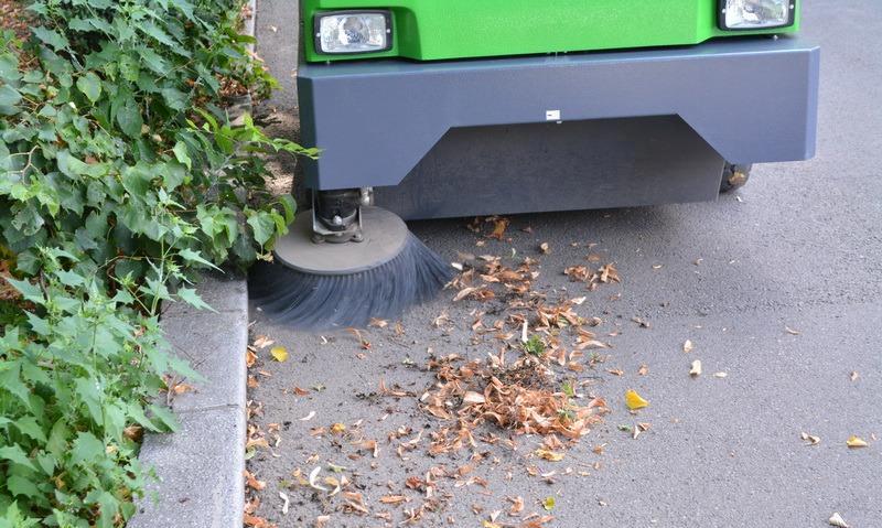 Pentru curățenia din oraș, primăria folosește o mașină de măturat stradal închiriată de la un operator privat.