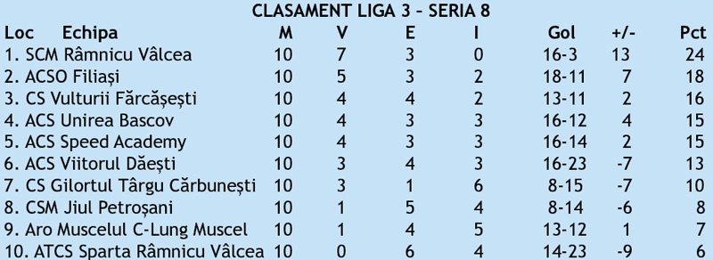 Pentru Fărcășești urmează un duel acasă cu Sparta Râmnicu Vâlcea, ultima clasată, iar succesul este imperios, în opinia antrenorului amfitrionilor. Partida se joacă vineri, 8 noiembrie, de la ora 14.00.