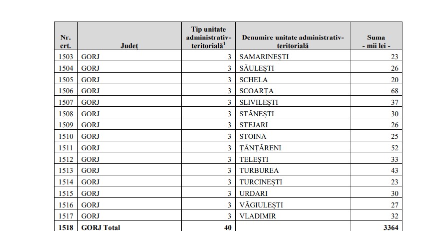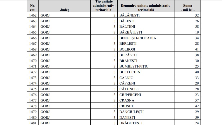 Cele mai mici sume, respectiv 19.000 lei, ajung în comunele Săcelu și Bărbătești.