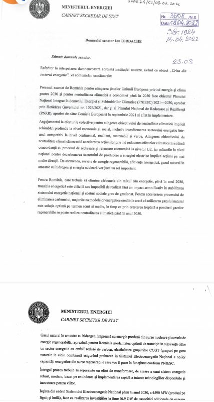 ,,Pe data de 23 martie 2022 am interpelat Ministrul Energiei și premierul cu privire la măsurile luate de Guvern pentru scăderea prețurilor la energie, planurile privind obținerea independenței energetice a României și planul de restructurare al Complexului Energetic Oltenia. Răspunsul transmis de PSD-iști denotă o lipsă completă de transparență și o bătaie de joc la adresa gorjenilor. Nu au răspuns la nicio întrebare, nu au oferit nicio informație nouă, rulează aceleași lozinci din ultimii trei ani și menționează că nu au actualizat datele pentru că „nu sunt finalizate discuțiile cu partenerii externi” ceea ce mi se pare foarte grav din moment ce solicitarea vizează siguranța sistemului energetic național”, a comunicat parlamentarul de Gorj.