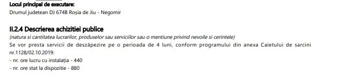Complexul Energetic Oltenia oferă peste 70.000 de lei pentru închirierea unei autospeciale cu deservant, pentru deszăpezire și combaterea poleiului. Serviciile vor fi prestate pe o perioadă de 4 luni, pe drumul județean 674B Roșia de Jiu – Negomir, aflat în administrarea CE Oltenia, respectiv a Carierei Roșia.