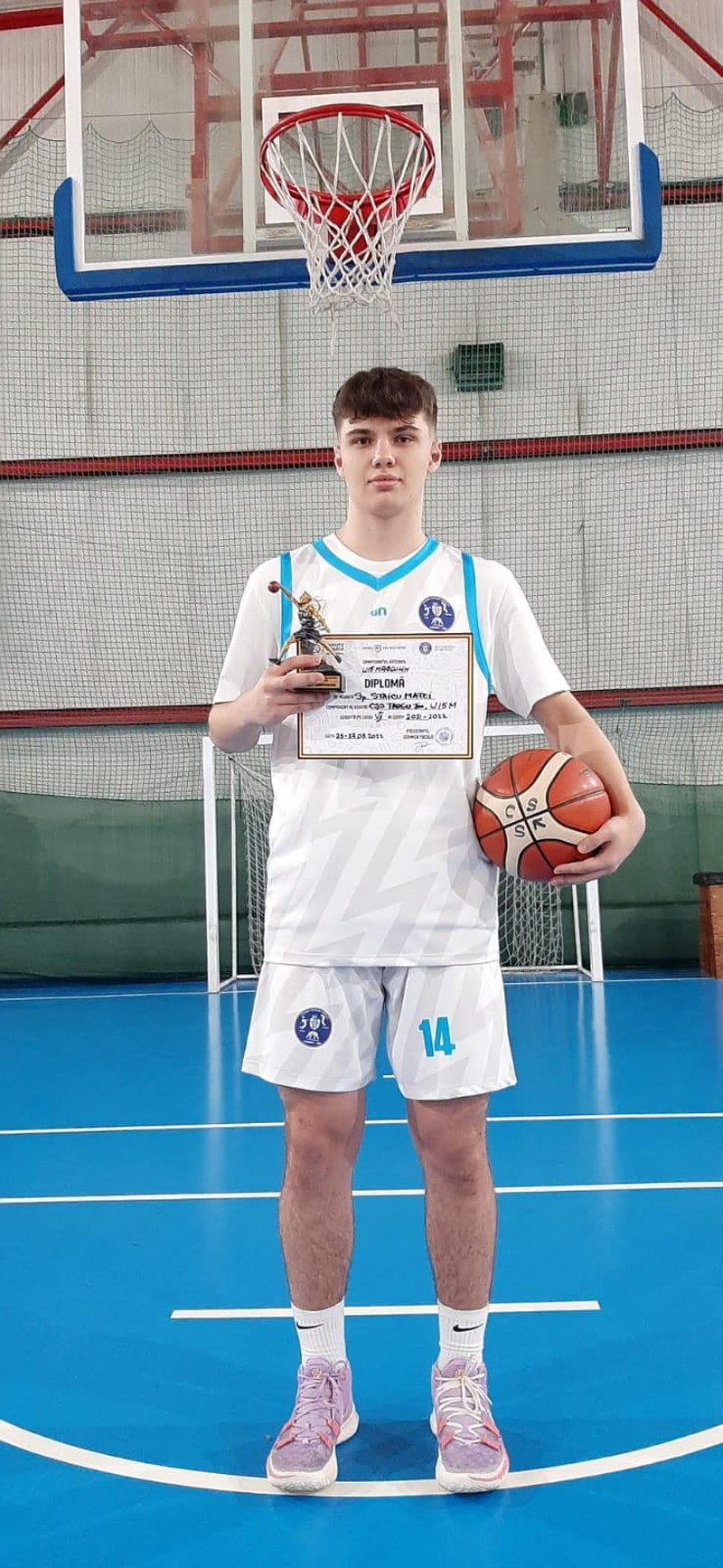 Matei Octavian Staicu, component al echipei de baschet CSS Târgu Jiu Under 15, a primit un trofeu special. Tânărul gorjean a fost desemnat cel mai bun recuperator de la turneul final, ediția 2021-2022. Formația condusă de antrenorul Carlos Popescu a terminat pe locul 7 campionatul. ,,Cu mare bucurie am primit de la Federația Română de Baschet adresa prin care sportivul Clubului Școlar Sportiv Târgu Jiu, Matei Octavian Staicu, component al echipei de U15 M participantă la turneul final si clasată pe locul VII, a fost desemnat în urma sondajelor și a statisticii jocurilor în care a evoluat ,,CEL MAI BUN RECUPERATOR,, al turneului final U15 M, ediția 2021-2022. FELICITARI Matei și mult succes în carieră”, au scris reprezentații CSS Târgu Jiu pe pagina oficială de facebook. Matei Octavian Staicu evoluează pe poziția de pivot.