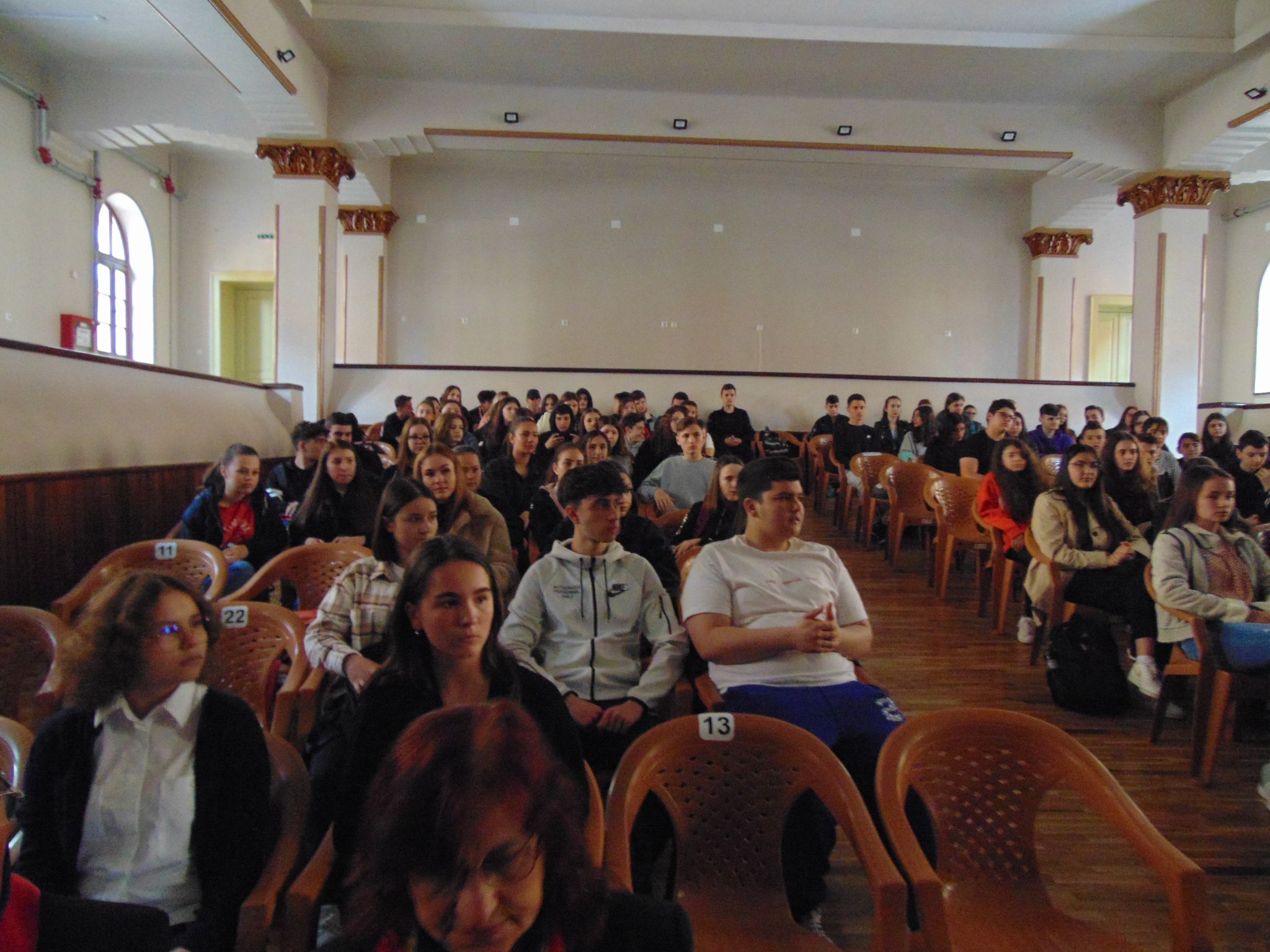 Joi, 4 mai 2023, începând cu ora 13:00, în amfiteatrul Colegiului Național „Spiru Haret” Târgu Jiu, în prezența elevilor claselor a VII-a A, a VIII-a C, a IX-a B, a X-a B, a XI-a A și a XI-a D, a fost desfășurată activitatea extracurriculară „Centenar Eroul Necunoscut”, coordonată de doamna profesor de istorie dr. Elena Cornoiu, în colaborare cu Asociația Națională Cultul Eroilor „Regina Maria”, Filiala Județului Gorj „Tudor Vladimirescu” (A.N.C.E. „R.M.” Gorj „T.V.”), prezentă în sală cu o delegație formată din col. (rtr.) dr. ing. Walter Loga, col. (rtr.) Gigi Bușe, dirig. Viorica Ionescu și ing. Vasile Ionescu. Menționez faptul că doamna profesor de istorie dr. Elena Cornoiu este vicepreședinte al A.N.C.E. „R.M.” Gorj „T.V.” și președinte al Cercului „Cultul Eroilor” de la Colegiul Național „Spiru Haret” Târgu Jiu.