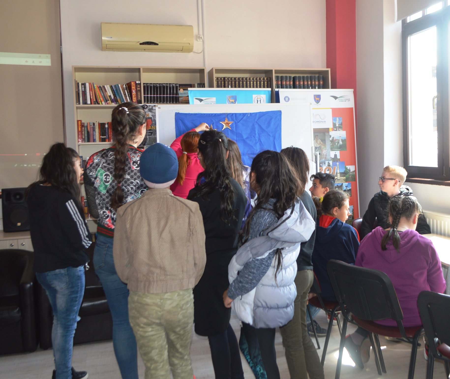 Gazda acestora a fost Diana Lăcătușu, consilier comunicare la CIED Gorj, care, după vizitare, a desfășurat un atelier cu tema ”Valori europene”. La acest atelier, elevii au urmărit două filmulețe despre ”Instituțiile Uniunii Europene” și ”Drepturile cetățenilor europeni”, discutând apoi cu reprezentanta CIED Gorj pe marginea informațiilor cuprinse în filmulețe. În continuare, elevii au identificat o serie de valori europene pe care le-au notat pe steluțele care au format apoi steagul Uniunii Europene. La final, participanții au primit materiale de la CIED Gorj. Această activitate s-a înscris în rândul activităților din proiectul ”Tu și EU împreună” al Centrului de Informare Europe Direct Gorj.