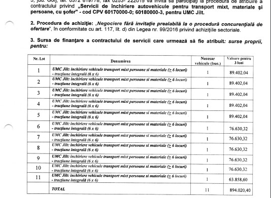 Complexul Energetic Oltenia a alocat noi fonduri pentru prestatorii de servicii. Compania are nevoie de autovehicule de transport mixt, persoane și materiale, cu șofer, pentru una dintre subunități. Este vorba de UMC Jilț.