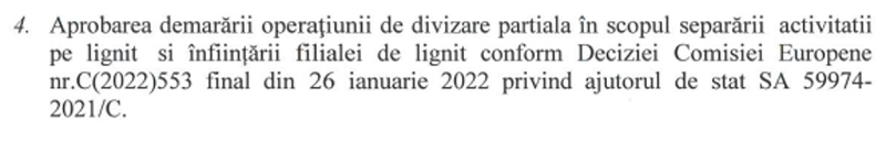 Măsura privind înființarea filialei pe lignit presupune crearea unei entități cu personalitate juridică și contabilă separată de CE Oltenia, care va integra activitatea de producție de energie electrică pe bază lignit, menținută în regim de rezervă de capacitate.