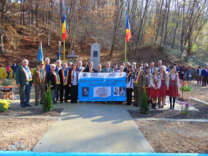 Comuna Dănești, localitate așezată în sud-vestul județului Gorj, are un bogat trecut istoric. Alcătuită din satele Bucureasa, Botorogi, Văcarea, Țîrculești, Brătuia, Merfulești, Trocani, Barza, Ungureni, Șasa, comuna Dănești respiră, de peste un secol, aerul tare al istoriei, prin paginile de glorie scrise în timpul Primului Război Mondial, în focul luptelor din toamna anului 1916. Mărturie a eroismului soldaților gorjeni, care nu și-au precupețit viața, știuți sau neștiuți, biruitori sau înfrânți, anonimi sau rămași în legendă, stau monumentele, troițele și crucile ridicate de urmași în cinstirea și pomenirea lor. Locuitorii comunei Dănești au dat sute de jertfe, numele acestora fiind încrustate în marmura sau piatra monumentelor și crucilor în fața cărora fiecare ar trebui să își plece cu smerenie fruntea. Pentru sărbătorirea Centenarului Marii Uniri și comemorării a 102 ani de la ultimele bătălii duse pe teritoriul Județului Gorj în perioada 3 – 6 noiembrie 1916, în Valea Brătuii din satul Trocani, comuna Dănești, a avut loc duminică, 4 noiembrie 2018, un ceremonial militar-religios. Cu acest prilej s-a dezvelit și resfințit Monumentul Eroilor ridicat de săteni în perioada anilor 1929 – 1930 care devenise aproape ruină. Prin intervenția conducerii Filialei Gorj a Asociației Naționale Cultul Eroilor „Regina Maria” la Primăria și Consiliul Local al Comunei Dănești, a insistenței unor consilieri patrioți s-a aprobat în ședința C.L. Dănești renovarea acestui monument, unicat în Gorj, care mai avea Însemnul Aducerii Aminte original. Prin eforturi comune, atât din partea Primăriei și a Consiliul Local al Comunei Dănești, cât și a unor săteni din comună s-a reușit salvarea acestui monument prin renovarea sa și amenajarea terenului pe care este amplasat. Monumentului din Valea Brătuii sătenii îi zic „Monumentul de la Izvorul Cișmea” pentru că de sub monument izvorăște o apă rece care ostoiește setea trecătorilor și a animalelor venite la pășunat. El este amplasat deasupra unui mare bazin cu apă potabilă, construit din beton armat de peste 500 metri pătrați din care apa se scurge pe două țevi într-un jgheab pentru adăpatul vitelor și de aici, printr-o conductă, este evacuată în ogașul pârăului Brătuia.Monumentul este de forma unui obelisc deasupra căruia un vultur de piatră cu o cruce în cioc veghează aici memoria pilduitoare a gorjenilor ce s-au jertfit în luptele de la Jiu, Mărăști, Mărășești și Oituz. Pe fațada obeliscului, sub vultur este montat Însemnul Aducerii Aminte original. Sub acesta este scris următorul mesaj: „În amintirea EROILOR din Brătuia căzuți vitejește pe câmpul de luptă pentru apărarea PATRIEI, întregirea neamului și slava Sfintei noastre Biserici”, iar deasupra, sub postamentul vulturului, pe fiecare fațetă sunt trecute numele luptelor cele mai grele la care au participat gorjenii în Războiul de Reîntregire 1916 – 1919, astfel: JIU, MĂRĂȘEȘTI, OITUZ ȘI MĂRĂȘTI. În spatele monumentului se află o mică construcție din piatră, care probabil a adăpostit o icoană, la care se închinau trecătorii când veneau să bea apă de la acest izvor, dar, în locul icoanei sunt trecute numele eroilor din Brătuia din Războiul de Independență și din Primul Război Mondial, ce reprezintă icoana de suflet a sătenilor din Brătuia. Duminică, 4 noiembrie 2018, în jurul orei 11, pe o vreme foarte frumoasă ca de început de toamnă, în Valea Brătuii s-au adunat peste trei sute de persoane, marea majoritate fiind săteni din comuna gorjeană Dănești. La ora 11:30 au sosit și oficialitățile județene în frunte cu domnul prefect Ciprian Adrian FLORESCU. A fost întâmpinat de primarul comunei, domnul Emilian Rusu și de comandantul Garnizoanei Târgu Jiu, domnul colonel Gheorghe Andronescu, apoi a primit raportul comandantului Gărzii de Onoare, a salutat Drapelul de Luptă, a trecut în revistă trupele din dispozitiv, a salutat Garda de Onoare și s-a alăturat oficialităților prezente la eveniment. Printre acestea s-a aflat domnul profesor Gheorghe Nichifor – vicepreședinte al Consiliului Județean Gorj, domnul deputat Dan Vîlceanu, președintele PNL Gorj, domnul Ion Stamatoiu – primarul Comunei Scoarța, consilieri județeni și locali, cadre militare active, în rezervă sau în retragere, dar și un sobor de cinci preoți. Moderatorul acestui ceremonial a fost domnul col. (r.) dr. ing. Walter LOGA – președintele Filialei Gorj a Asociației Cultul Eroilor „Regina Maria”. Deschiderea a fost făcută de către primarul comunei, domnul Emilian Rusu, care a prezentat un scurt istoric al luptelor care s-au dus pe aceste locuri în zilele de 3 – 6 noiembrie 1916, modul cum s-a construit monumentul în perioada anilor 1929 – 1930, festivitatea de dezvelire și sfințire din data de 20 iulie 1930, la care au participat și înalte oficialități de la București, inclusiv ministrul Culturii, Nichifor Crainic. La final ne-a informat despre munca depusă de autoritățile locale împreună cu sătenii pentru renovarea acestui monument ajuns aproape o ruină și îngropat de pământul ce alunecase din dealul la poalele căruia este amplasat. A mulțumit tuturor celor care și-au adus contribuția ca acest monument să arate așa frumos pentru slava și gloria eroilor din Brătuia. A fost dezvelit monumentul de către domnul prefect, domnul vicepreședinte al C.J. Gorj, Gheorghe Nichifor și domnul primar. Un sobor de 5 preoți ai comunei au sfințit noul monument și s-au rugat și pentru sufletele eroilor din acest sat. S-au rostit alocuțiuni evocatoare. Domnul prefect, Ciprian Florescu a adresat un mesaj foarte frumos în an centenar pe care-l redau în întregime: „Particip astăzi cu emoție la reabilitarea unui monument de importanță covârșitoare pentru această zonă
