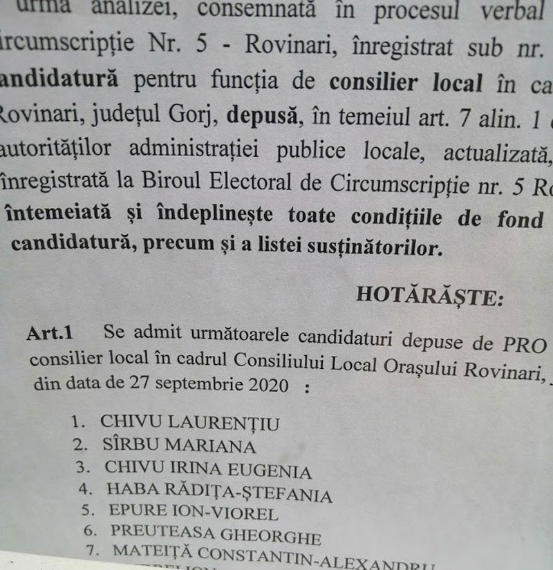Aterizat forțat în Pro România și acceptat ca și candidat la funcția de primar al orașului Rovinari, în lipsa unei alte opțiuni, Laurențiu Chivu și-a trecut rudele și apropiații pe lista de candidați la consiliul local. Conștient că nu are nici o șansă, nici de această dată, pentru a ajunge primar, Chivu s-a gândit că ar fi bine ca și cel puțin cei din familia sa să prindă un loc de consilier local, așa că, pe o poziție eligibilă, a plasat-o chiar pe soția fratelui său.
