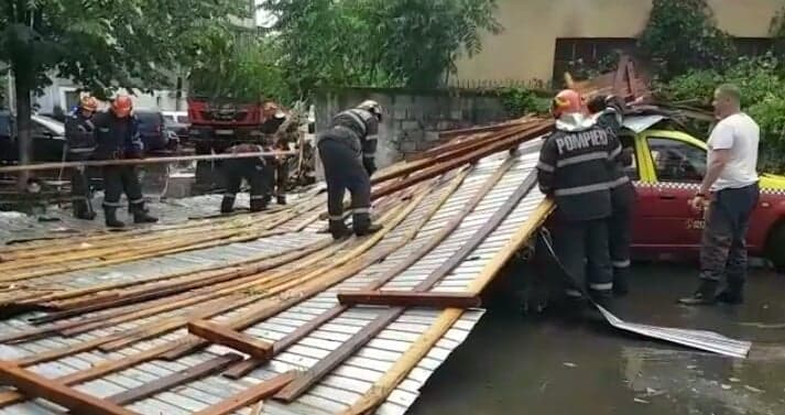 Cinci autoturisme avariate, după ce un acoperiş a fost luat de vânt, la Târgu-Jiu