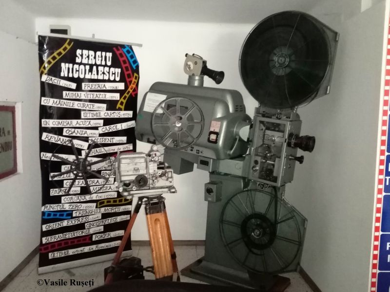 Este vorba despre aparate de filmat aparținând unor epoci diferite (spre exemplu, unul din anul 1939 sau altul portabil, aflat într-o cutie). Acesta au pelicule de 8,16 şi 35 de mm. Din fotografiile expuse în hol, am remarcat, de la prima vedere, o ilustrație grafică reprezentând o scenă de grup făcută la inaugurarea cinematografului.