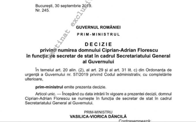 El a fost numit, luni, pe o funcție similară la Secretariatul General al Guvernului. Asta după ce Adrian Petcu a contestat în instanță hotărârea prin care a fost schimbat din funcția de secretar de stat în MAI, iar Curtea de Apel București a suspendat decizia premierului Viorica Dăncilă.