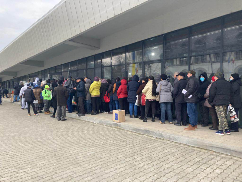 Situație mai puțin întâlnită în municipiu la început de an, unde ieri dimineață sute de oameni s-au pus la coadă, cu noaptea-n cap, pentru a prinde ajutoarele alimentare gratuite oferite de Uniunea Europeană.