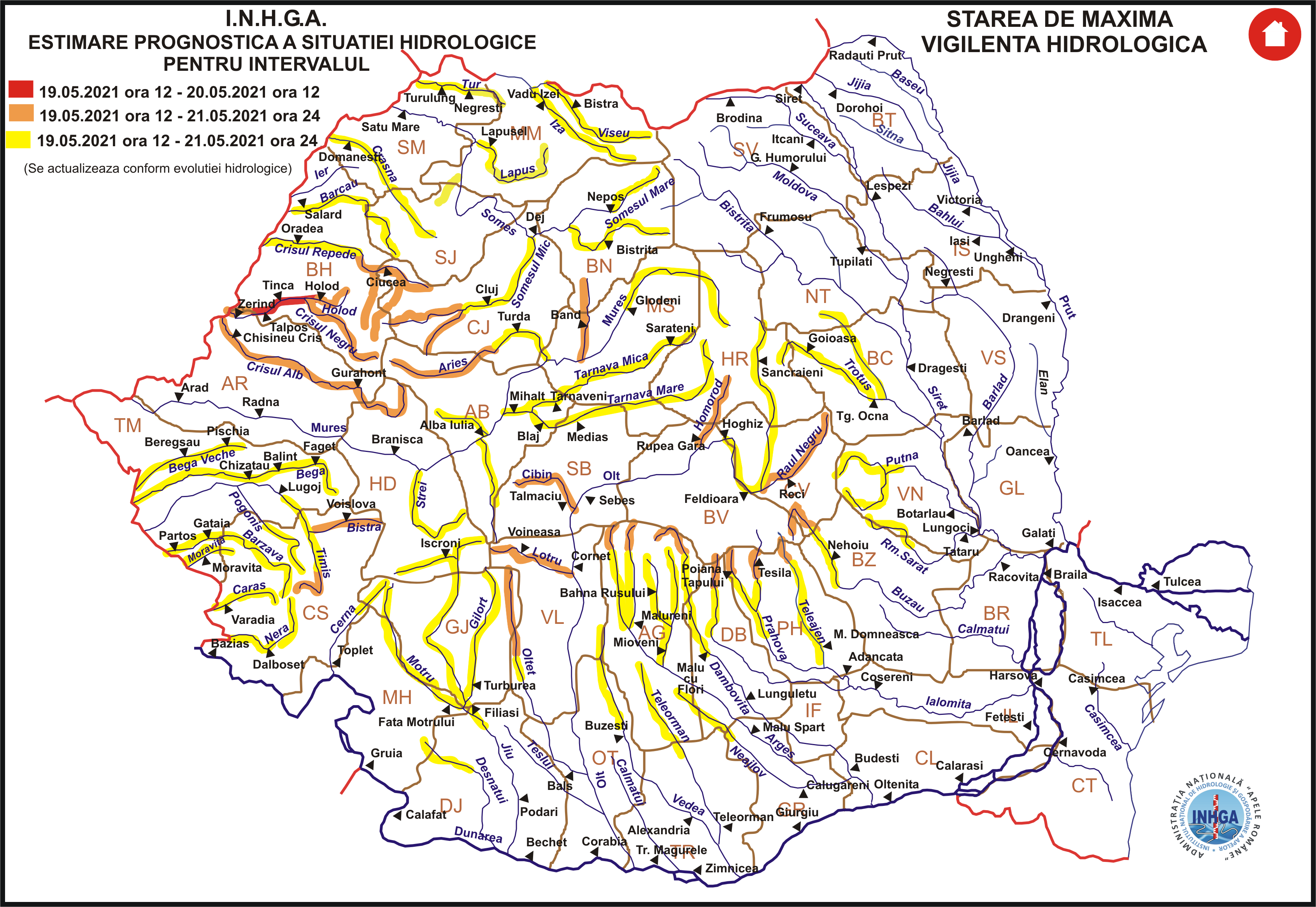 Administrația Bazinală Apă Jiu a anunțat că în intervalul 20 mai, ora 6.00 – 21 mai, ora 24.00, va fi Cod galben de inundații pe Jiu și Desnățui. Avertizările Hidrologice pentru fenomene imediate sunt astfel: