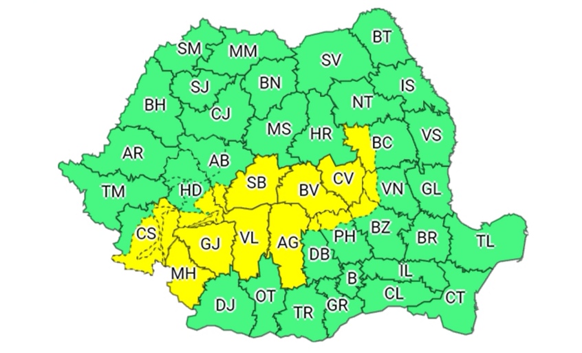 ATENȚIONARE METEOROLOGICĂ COD GALBEN