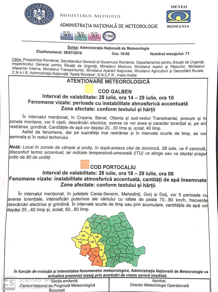 Cod portocaliu de ploi, în Gorj