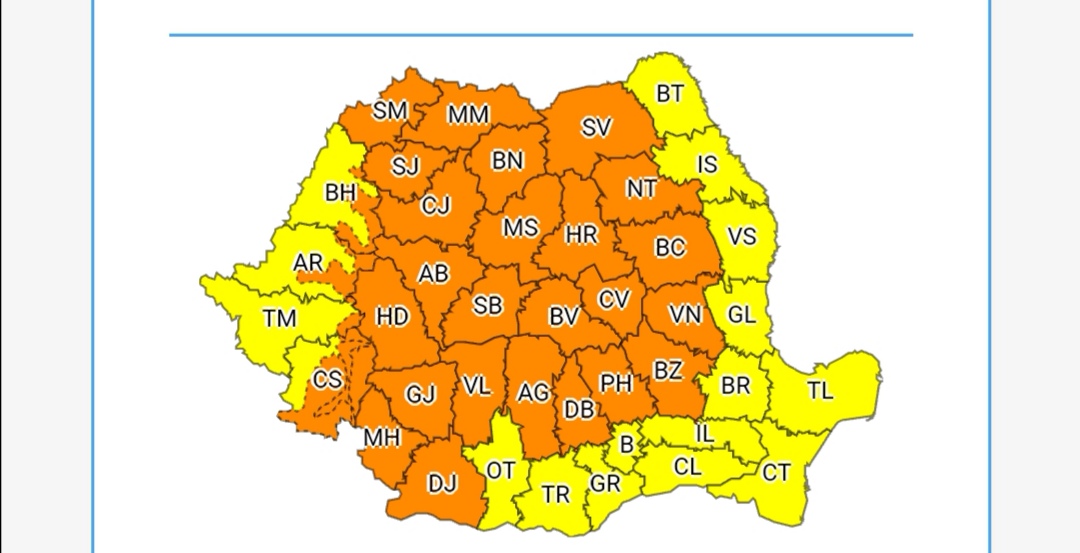 Instabilitatea atmosferică va fi temporar accentuată, în cursul nopții de vineri spre sâmbătă în regiunile vestice, sâmbătă în nord-vest, centru, sud și la munte, iar seara și în prima parte a nopții de sâmbătă spre duminică, în jumătatea de est a țării.