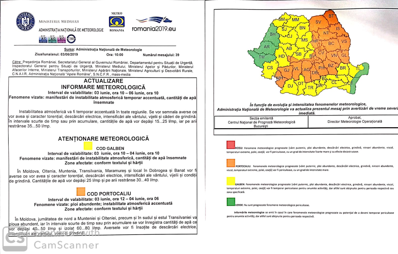 Cod portocaliu de ploi în Gorj până mâine dimineață