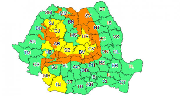 Potrivit ANM, sunt vizate zonele montane, la altitudini de peste 1.700 de metri, din județele Maramureș, Bistrița-Năsăud, Mureș, Sălaj, Bihor, Cluj, Alba, Caraș-Severin, Hunedoara, Gorj, Sibiu, Vâlcea, Argeș, Brașov, Covasna, Harghita, Prahova, Buzău, Vrancea, Bacău, Neamț și Suceava.