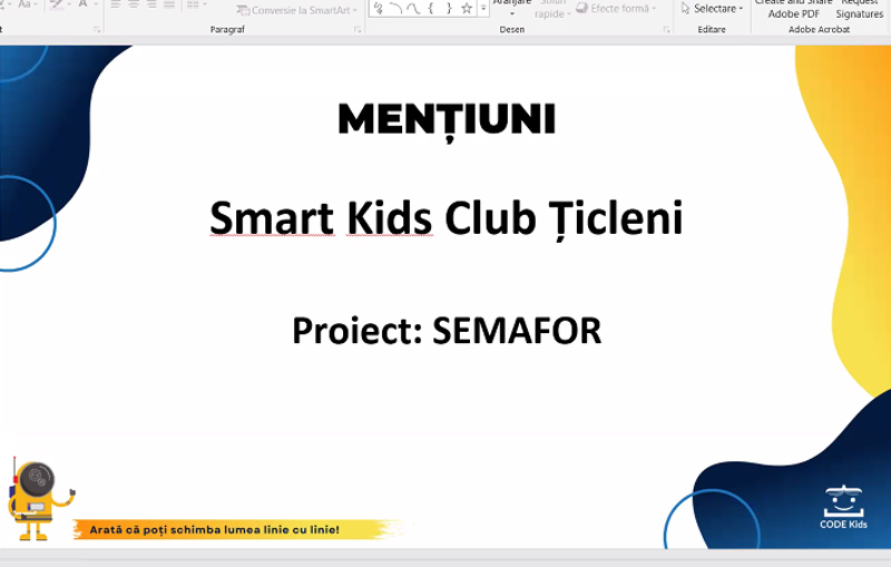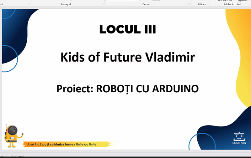 Clubul veteran de la Biblioteca Vladimir, „Kids for Future Vladimir”, alcătuit din Alexandru Butică, Raul-Ionuț Mogoșanu și David Cinteză, coordonați de dna bibliotecar Anișoara Bocai, ne-au prezentat proiectul „Roboți cu Arduino”. Parafrazăm, o dată coder, totdeauna coder fidel clubului tău, ca să le mulțumim pentru cum i-au mentorat pe copiii din Vladimir, lui Carlos Catană (student la Politehnică) și lui Emilian Furnigea, alumni CODE Kids. Au încheiat seria prezentărilor coderii din clubul „Smart Kids Club” de la Biblioteca Orășenească Țicleni, Alin Nicușor Gîscă, Alexandra-Elena Iloiu, Crina Făină, Ștefania-Roberta Făină, coordonați de dna bibliotecar Adriana Vîrdarie cu proiectul „Semafor”.
