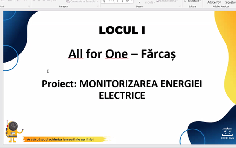 for one”: Rebeca Andreea Spiridon, Maria Steliana Marieta, Mariana Alexandra Radu, Ștefan Constantin Mădălin, Nicușor Adelin Popescu, Marian Denis Alexandru Buzdugă. Coordonator este dna bibliotecar Mihaela Nelina Miereanu de la Biblioteca publică Fărcaș, Dolj. Gazde bune, coderii din Gorj au încheiat suita de prezentări.