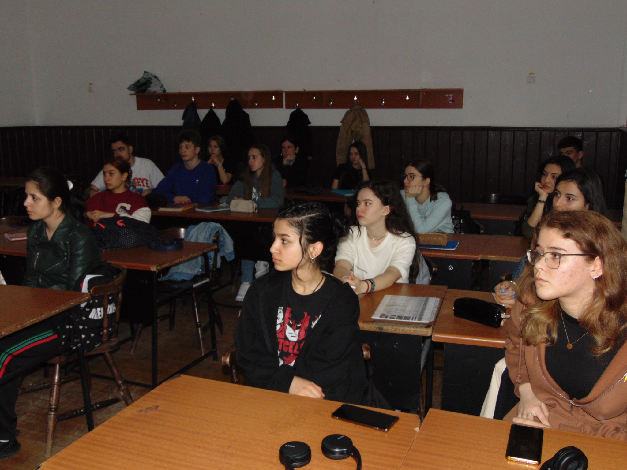 Delegația A.N.C.E. „R.M.” Gorj T.V.” formată din col. (rtr.) dr. ing. Walter Loga, col. (rtr.) Gigi Bușe și col. (rtr.) Munteanu Vasile, a fost primită cu plăcere de către doamna director adjunct Vasilica Udriștoiu și condusă la cancelaria școlii unde ne-am întâlnit cu domnul profesor de istorie Claudiu Mărăcine. Acolo am discutat programul ce urmează a fi prezentat elevilor de la clasa a X-a G a acestui renumit colegiu național, unde învață și eleva Irina Jianu, care a ocupat locul I la faza națională a Olimpiadei de istorie, după care am mers cu domnul profesor la sala de clasă unde am prezentat proiectul cultural-istoric și educativ intitulat: „EROUL NECUNOSCUT – SIMBOL AL EROISMULUI NAȚIONAL. 100 DE ANI DE DĂINUIRE”.