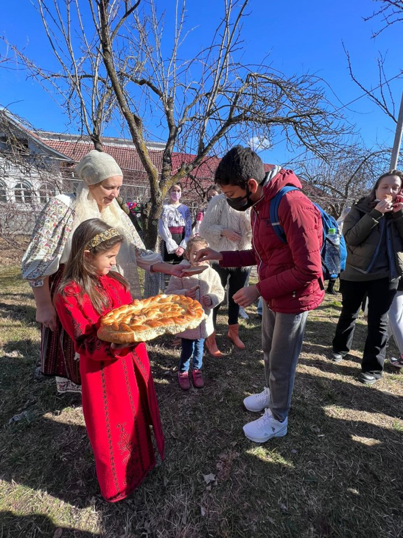 Ziua de joi, 24.02.2022, i-a aflat pe oaspeții noștri alături de elevii CNTV în curtea muzeului etnografic Sf Ana al doamnelor Lupu Mihaela și Lupu Ana din satul Bălănești. Aceștia au fost primiți în mod tradițional cu pâine și cu sare, dar și cu o frumoasă colecție de obiecte populare. Muzica și dansul popular gorjenesc i-au însoțit și de data aceasta pe oaspeții noștri. Domnul artist Coneru Dumitru, în mâinile căruia lutul prinde formă și care a hotărât să lase în urmă o frumoasă moștenire și să îi învețe pe copiii din Cornești arta olăritului, a transmis bucuria creării unui obiect din lut oaspeților noștri.