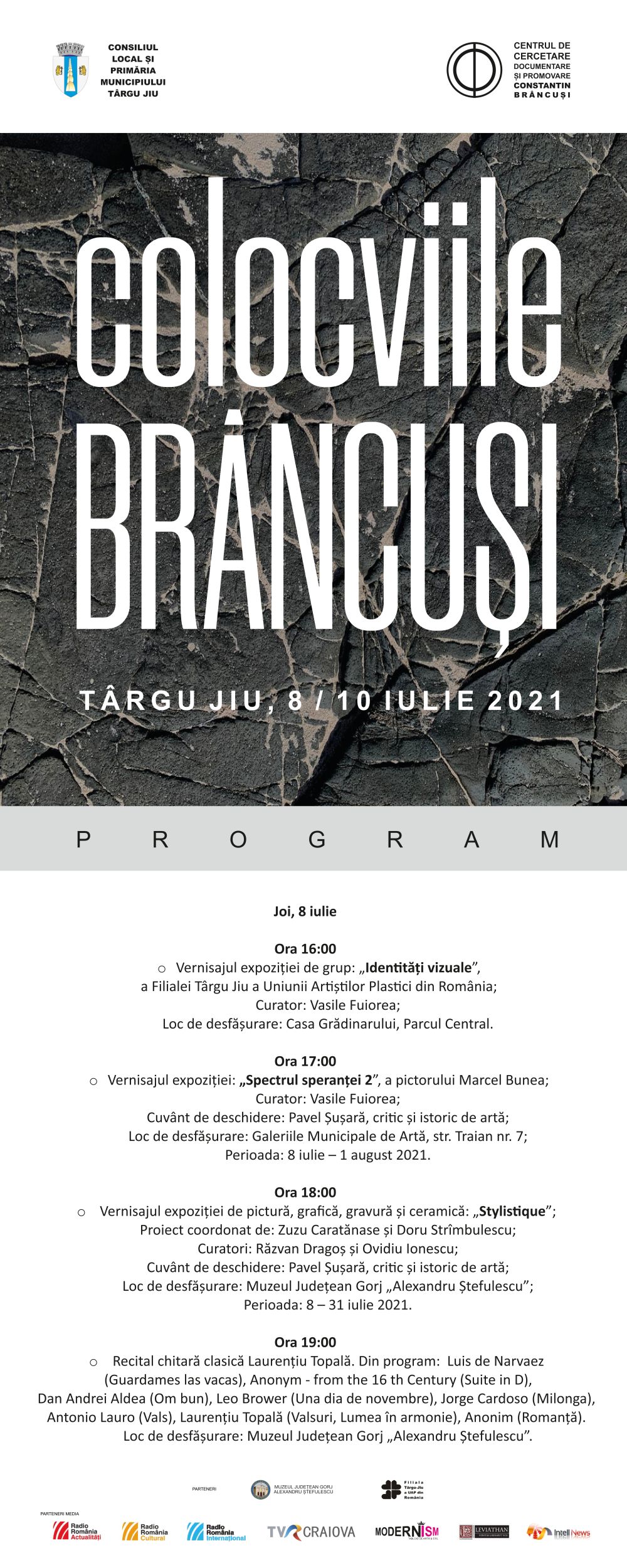 Centrul de Cercetare, Documentare și Promovare „Constantin Brâncuși”, Consiliul Local și Primăria Municipiului Târgu Jiu organizează, în zilele de 8 și 9 iulie 2021, COLOCVIILE BRÂNCUȘI, manifestare care continuă seria programelor dedicate Ansamblului Monumental „Calea Eroilor”. Joi, 8 iulie, de la ora 16, la Casa Grădinarului din Parcul Central, va fi vernisată expoziția de grup „Identități vizuale”, al cărei curator este prof. Vasile Fuiorea, președintele Filialei Târgu Jiu a Uniunii Artiștilor Plastici din România. Expun 22 de artiști plastici din cadrul filialei.