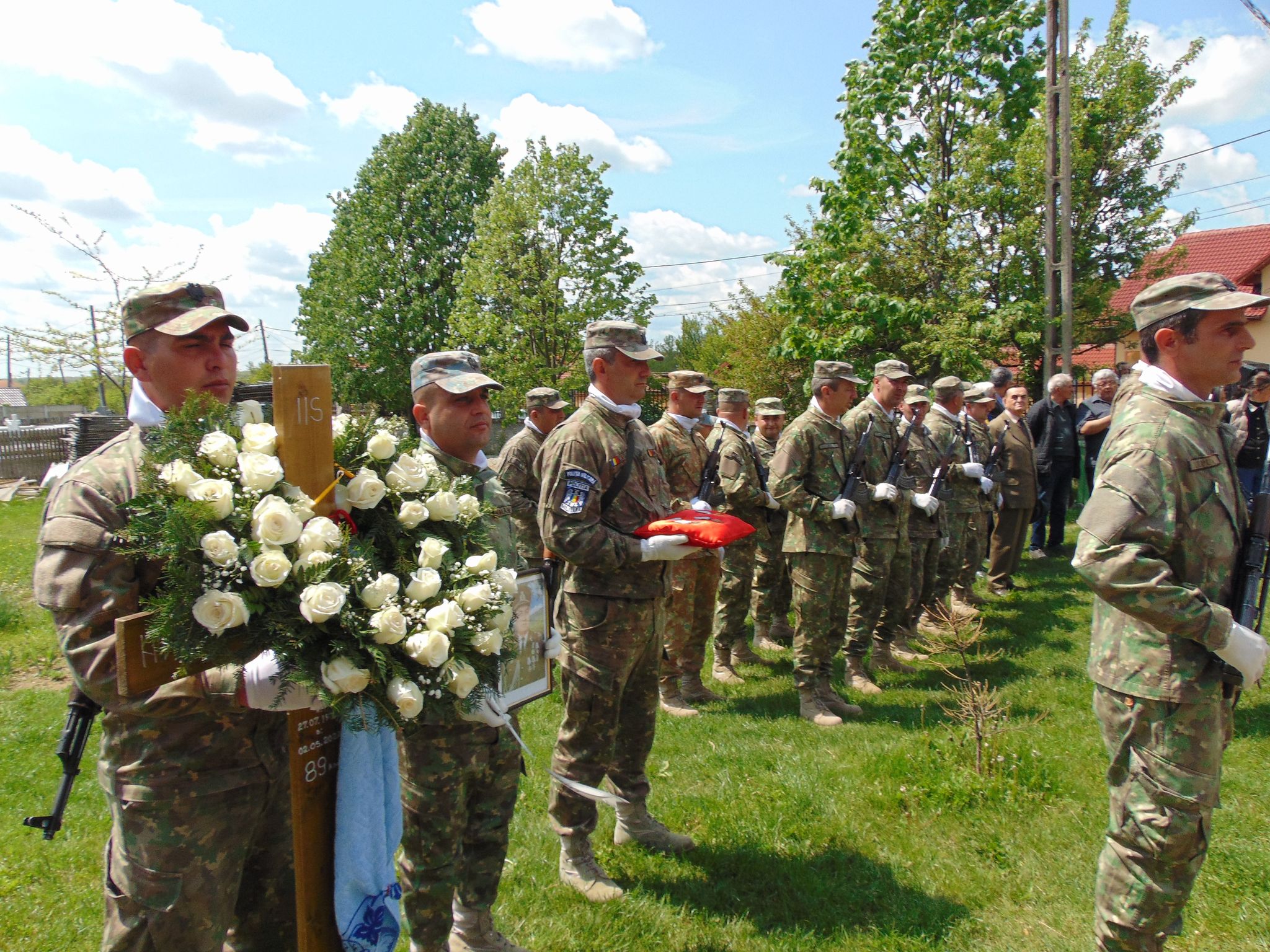 În cimitir, înainte de a-l băga în mormânt, comandantul gărzii de onoare i-a înmânat domnului Zinca Daniel, băiatul defunctului, drapelul tricolor, apoi, în timp ce sicriul era coborât în mormânt, pe melodia „Liniște”, interpretată de gornistul Bădescu Gheorghe, militarii i-au prezentat onorul și au tras trei salve de foc.