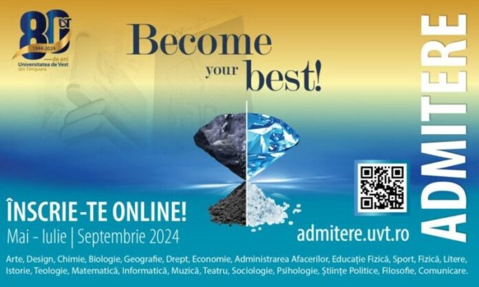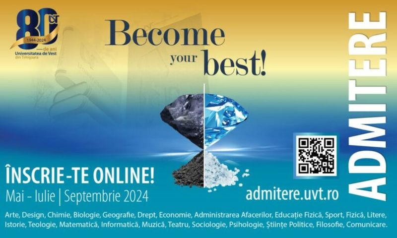 Toate informațiile despre procesul de admitere și oportunitățile pe care UVT le oferă sunt disponibile pe site-ul UVT dedicat procesului de admitere – admitere.uvt.ro.