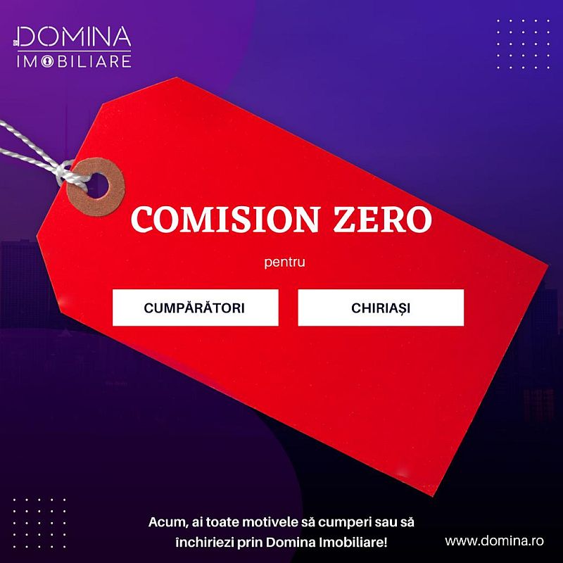 Târgu Jiu, 22 martie 2022 – Domina Imobiliare, agenția cu cel mai important portofoliu de clienți și de oferte din Oltenia, anunță aplicarea politicii de comision zero pentru cumpărătorii sau chiriașii care aleg o proprietate prin www.domina.ro. Beneficiul este valabil pentru orice tip de ofertă din portofoliu: case/vile, apartamente/garsoniere, spații comerciale, depozite sau terenuri.