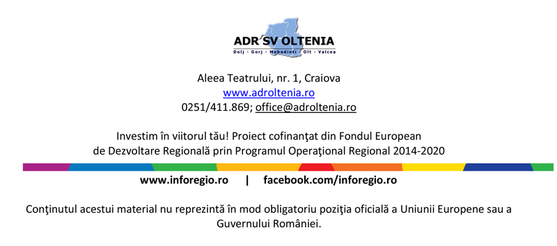 Lista completă a contractelor semnate la nivelul regiunii Sud-Vest Oltenia, precum și alte informații legate de implementarea POR 2014-2020, se regăsesc pe pagina dedicată programului, www.por2014-2020.adroltenia.ro.