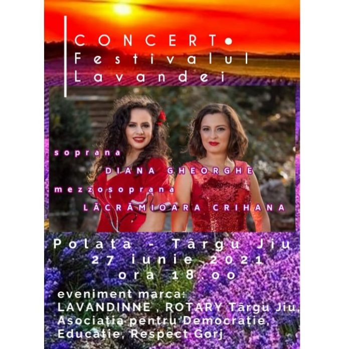 În cadrul Festivalului Lavandei ediția a-II-a, Asociația pentru Democrație Educație Respect, Lavandinne și Clubul Rotary din Târgu Jiu organizează în data de 27 iunie 2021, la ora 18:00, un concert de muzică clasică susținut de: soprana Diana Gheorghe, mezzosoprana Lăcrămioara Crihana și baritonul Mădălin Claudiu Băban.