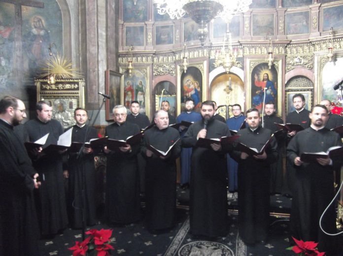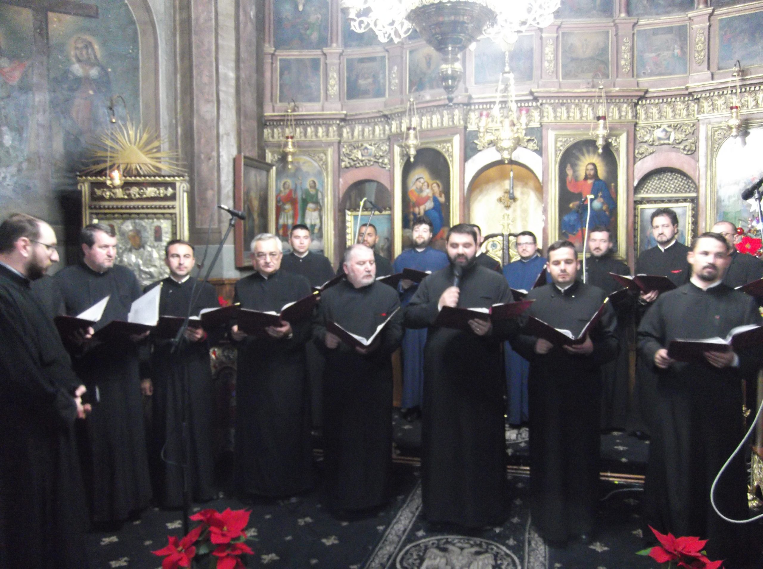 Biserica cu hramul ,,Sfinţii arhangheli Mihail, Gavriil şi Rafail’’ din centrul municipiului Târgu-Jiu a găzduit luni, 16 decembrie 2019, de la ora 17.00, un eveniment deosebit, dedicat credincioşilor parohiei şi nu numai: concertul de colinde şi cântece religioase ,,Hristos Se naşte, slăviţi-L!’’, în interpretarea coralei preoţilor gorjeni ,,NICOFONIS’’, dirijor arhidiacon prof.dr.Nicuşor Lăzărică. În biserica ce s-a dovedit neîncăpătoare pentru cei care au dorit să asculte colindele ce vestesc Naşterea Domnului, preotul-paroh Gheorghe Gomoi, gazda evenimentului, le-a dedicat o bună parte din colinde mamelor şi copiilor prezenţi în Biserică, cât şi celor care nu şi-au cunoscut mamele din diverse motive.
