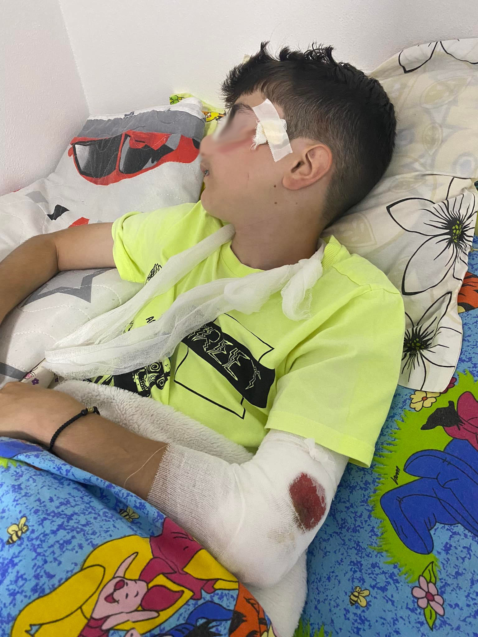 Băiețelul a ajuns cu o „mare infecție” la un spital din București. „După 10 zile de antibiotic și… recurățat, recusut și scos cheaguri de puroi de la cusătura de ciorap, copilul este bine”, spunea tatăl micuțului.