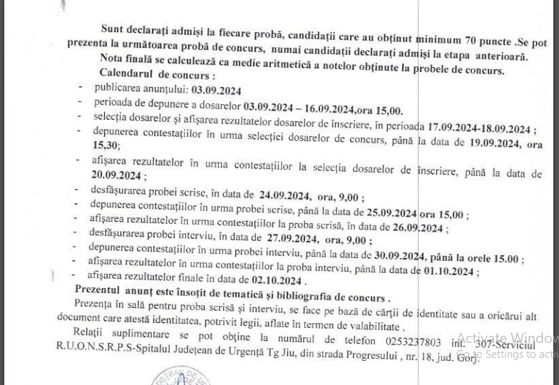 Spitalul Județean de Urgență din Târgu Jiu a reluat concursul pentru ocuparea postului de șef serviciu Aprovizionare, Transport, Achiziții Publice și Contractare.