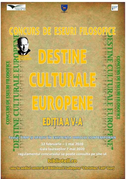 BIBLIOTECA JUDEȚEANĂ ”CHRISTIAN TELL” GORJ și CENTRUL DE INFORMARE EUROPE DIRECT GORJ organizează concursul de eseuri filosofice dedicat elevilor de liceu, având ca scop constituirea unui cadru deopotrivă formal și nonformal de consolidare a cunoștințelor și intereselor culturale și științifice ale acestora. Această inițiativă propune dezvoltarea unei gândiri reflexive asupra culturii, asupra timpului și spațiului, asupra existenței umane sub aspect socio-cultural.