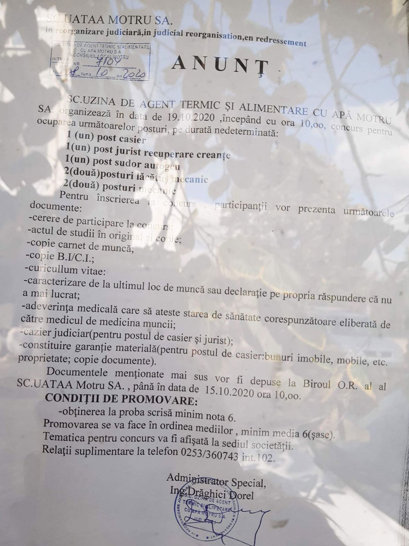 Atât primarul Cosmin Morega, cât și mai mulți cetățeni au cerut anularea concursului pentru care candidează o singură persoană, postul de jurist nefiind unul care este necesar pentru uzina ce nu este pregătită pentru sezonul rece.