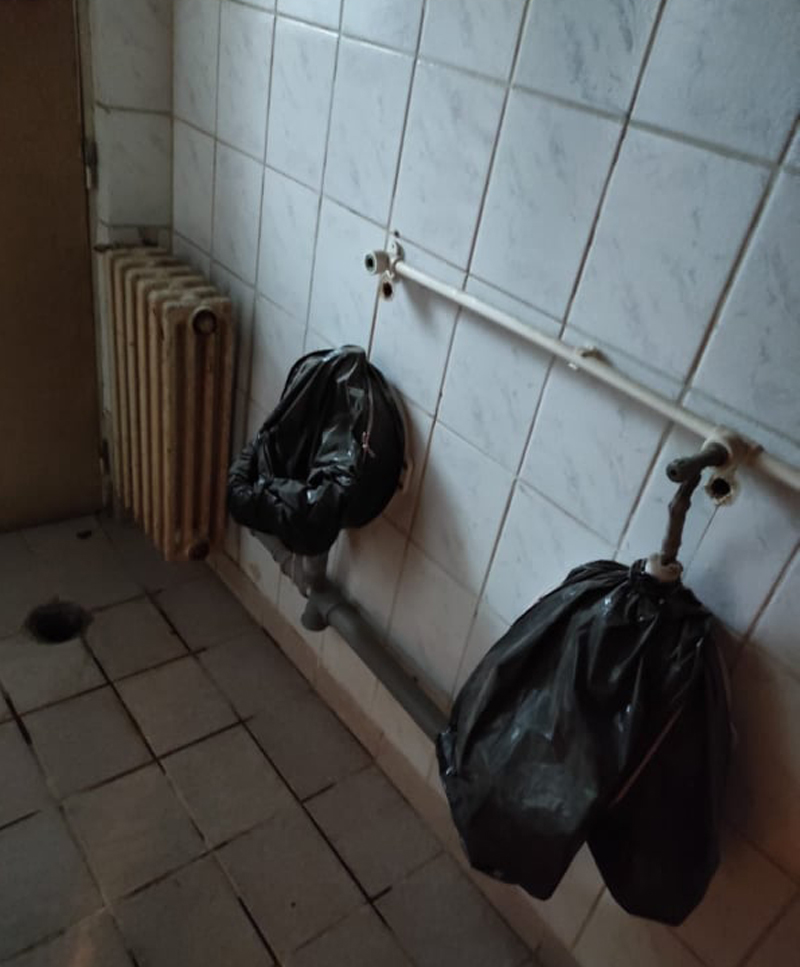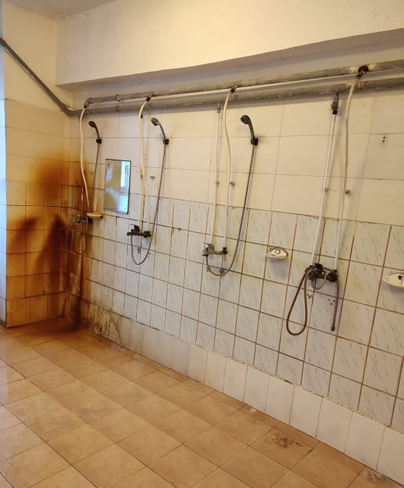 Instalațiile sanitare din băile salariaților din această carieră minieră sunt antice și de demult, chiuvetele sunt îngălbenite sau deloc și sunt înlocuite chiar cu un jgheab metalic folosit pentru adăparea animalelor, dușurile nu funcționează iar pișoarele sunt învelite în saci menajeri pentru că sunt sparte.