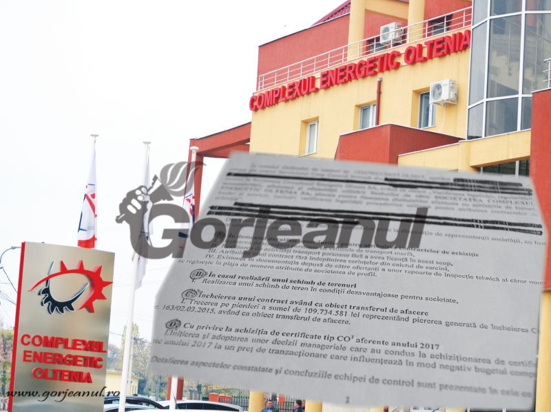 Complexul Energetic Oltenia a fost prejudiciat cu zeci de milioane de lei în urma unor achiziții de bunuri, lucrări și servicii, realizate în timpul mandatului actualului președinte al Directoratului CEO, Sorin Boza, și al celor care compun structura de conducere a companiei din Gorj. Este concluzia unui raport de control, realizat de Serviciul Corp Control al Ministerului Energiei, la ordinul fostului ministru Toma Petcu. Raportul de control a fost înregistrat însă la Ministerul Energiei pe 21 mai 2018, instituție condusă acum de ministrul Anton Anton, și transmis CE Oltenia, două zile mai târziu. Documentul destul de stufos subliniază grave abateri în domeniul derulării procedurilor pentru contractele de achiziție, în cazul realizării unui schimb de terenuri, pentru încheierea unui contract având ca obiect transferul de afacere, contract parafat în anul 2015, dar trecut pe pierderi de actuala conducere a companiei, și cu privire la achiziționarea mult discutatelor certificate de tip CO2, aferente anului 2017.