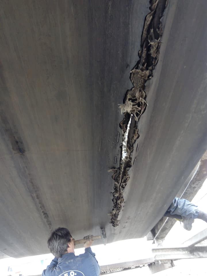 Înarmați cu câte un ciocan, unii dintre angajații unităților miniere ale CEO fac și această activitate pentru menținerea în funcțiune a unor bucăți de cauciuc care au de mult timp depășit termenul de funcționare.